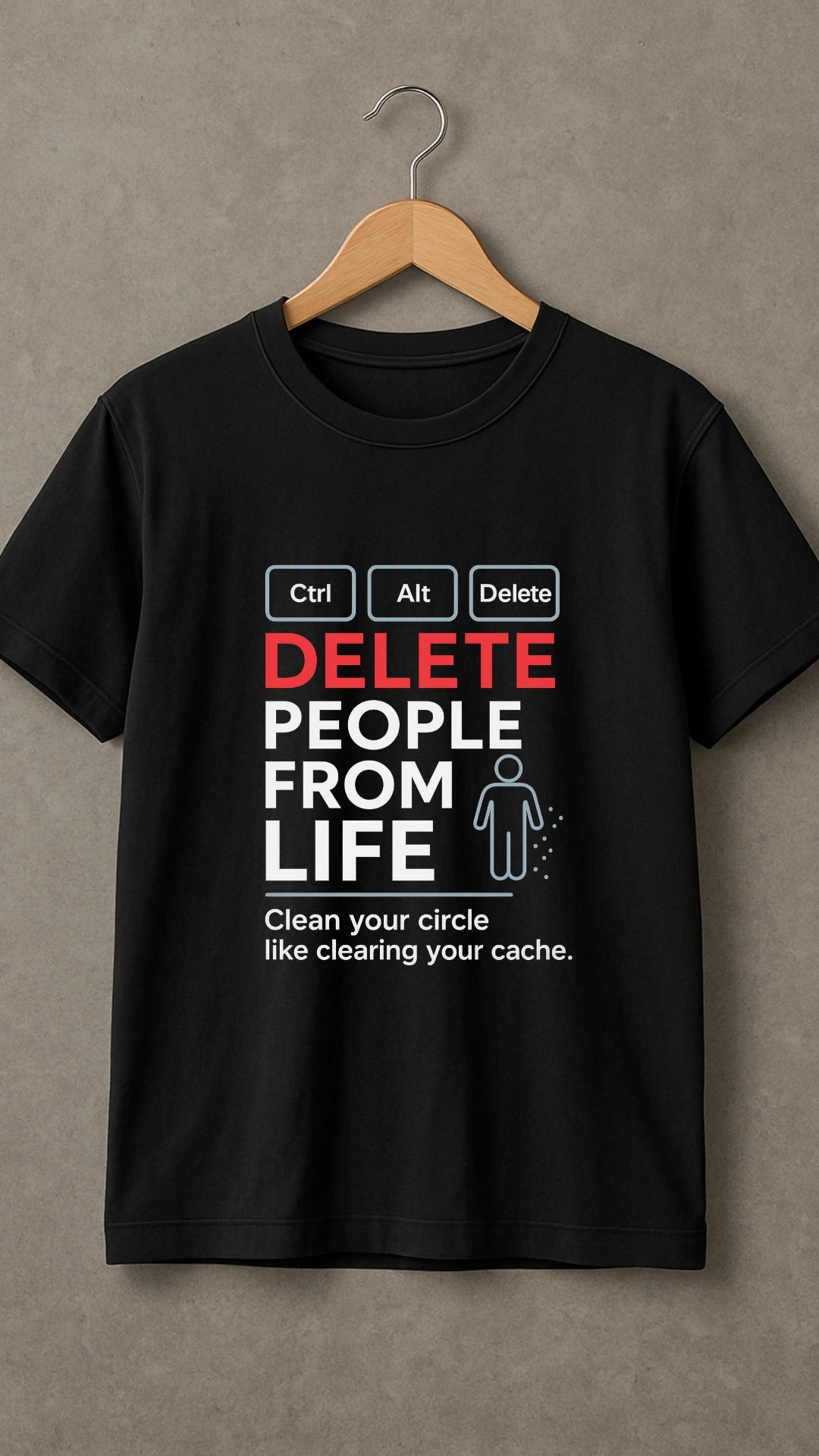 A bold and modern statement for anyone ready to declutter their life! This graphic tee blends tech culture with personal growth, using the familiar keyboard combo Ctrl + Alt + Delete to deliver a powerful metaphor: eliminate negativity, toxic relationships, and unnecessary drama — just like clearing a frozen system.